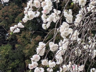 ハナモモ満開 境内に1本だけあるハナモモが満開になりました。 近郊にあるハナモモの名所もすべて満開で、紅白の色鮮やかなハナモモの花が芽に染みます。