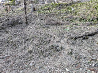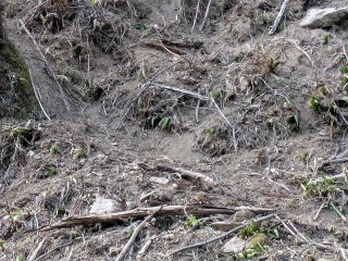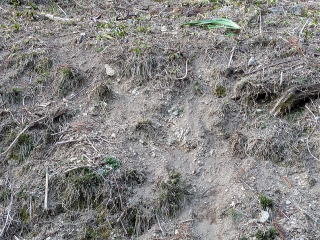 境内南側にある駐車場の斜面です。鹿が行き来した獣道がしっかり残っています。