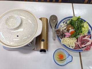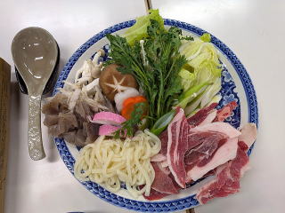 新城市門谷地区、鳳来寺山表参道中間地点にある「かさすぎ」のメニュー紹介第6回目です。冬期限定メニューである「ししなべ」をいただきました。甘口の赤味噌仕立ての鍋の中に、冷凍のしし肉・野菜・うどんを入れて煮込み、すき焼き風に生卵でいただきます。野菜は、白菜・長ねぎ・春菊・えのき茸・椎茸・しめじ・ごぼう・こんにゃく・大根・人参と種類も豊富です。たいへんおいしくいただきましたが、値段が少々・・・・¥3,600です。