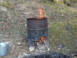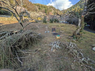 参道下梅苑焼却開始 参道下の梅苑において、剪定作業終了後、集められた剪定枝の焼却作業を開始しました。焼却ヶ所5ヶ所目で、ここが終われば焼却作業が終了します。正味3日程かかるかな?