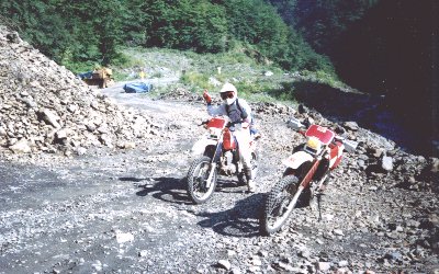 中津川林道は埼玉県と長野県を結ぶ林道で、県境の三国峠を挟んで長野県側は 全面舗装、埼玉県側がダートだ。今にも崩れそうな路肩やゴツゴツした岩肌、涼しげな清流な ど変化に富んだ走り応えのある林道で人気がある。