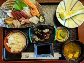 | 7/9/18 刺身定食 ¥2,200 | 7/9/26 サンマの塩焼き定食 ¥1,200 | 7/10/22 マグロ・タイ・サーモンの3色ちらし ¥1,800 |