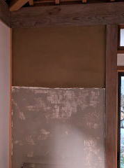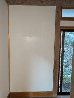 庫裡白壁修復 10月29日に崩壊しているのがみつかった、庫裡1階北東隅廊下白壁ですが、11月15日と昨日19日に職人さんが来ていただき、修復作業が行われました。15日に下塗り、昨日は漆喰の仕上げ作業が行われ、きれいに修復作業が完了しました。