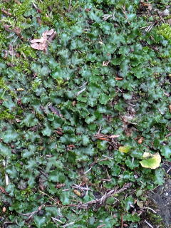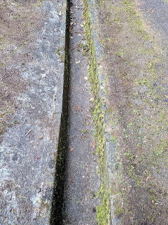 ゼニゴケ駆除 釣月寺に至る市道の側溝廻りにゼニゴケが繁茂しています。見栄えが悪く、夏期に雑草も一緒に繁茂するため、この時期に手作業で駆除することにしました。わずか150m程の区間ですが、午後からの作業に三日ほどかかりました。