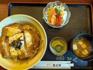 新城市長篠地区、長篠城趾のすぐ東側にある「とくや」のメニュー紹介第10回目です。丼物メニューの三品をおいしくいただきました。